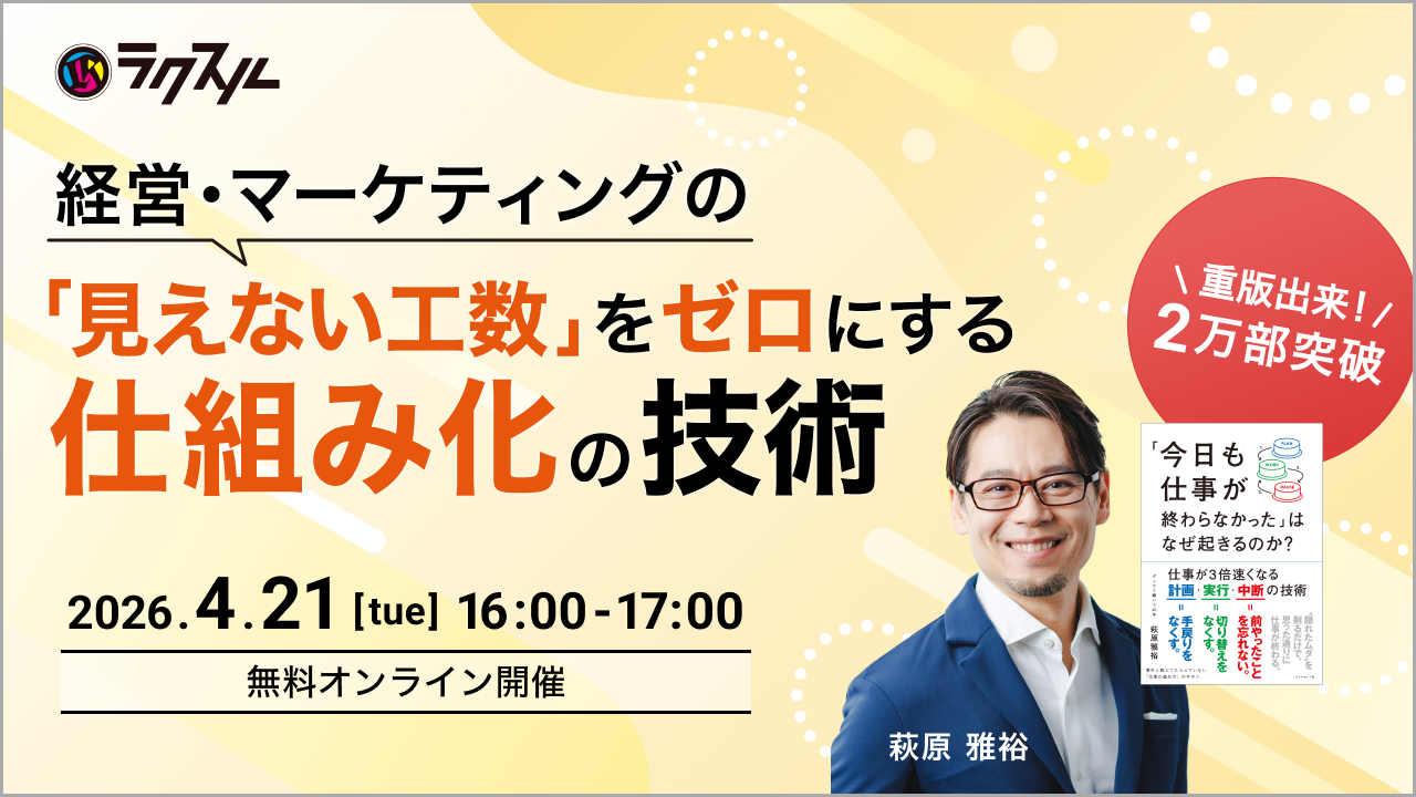 本セミナーでは、創業期のLINE WORKSで売上78億円、導入20万社超という圧倒的な成長へと導いた萩原雅裕氏が登壇。30年以上の試行錯誤を体系化した「仕事の技術」を公開、2万部を突破した『「今日も仕事が終わらなかった」はなぜ起きるのか?』をベースに、